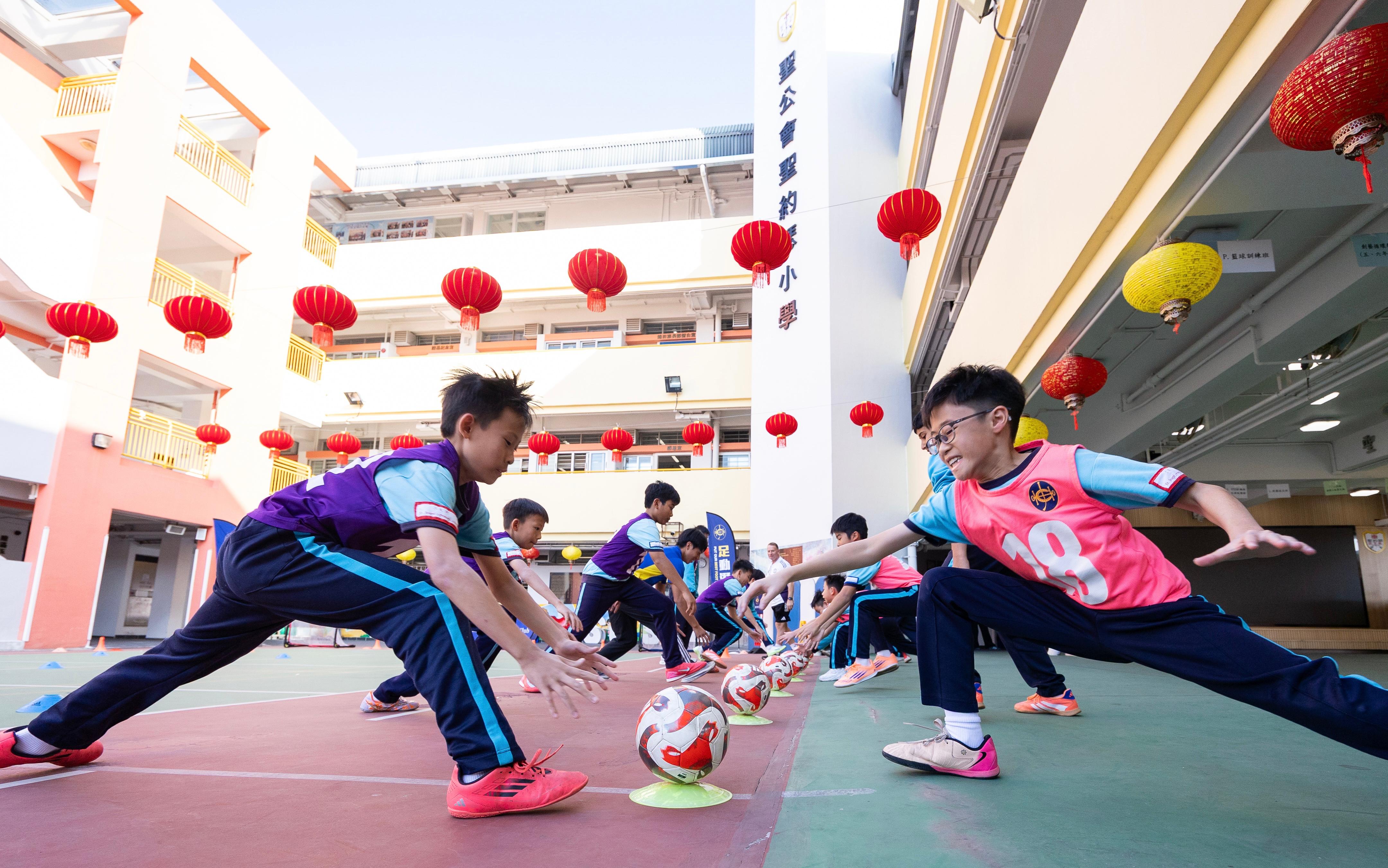 Since 2013, together with Manchester United, we have been on a journey to implement the JC School Football Development Scheme (the Scheme) in kindergartens, primary and secondary schools, as well as tertiary institutions. The Scheme is now supported by donation from The Hong Kong Jockey Club Charities Trust to Tung Wah Group of Hospitals for programme operation.
