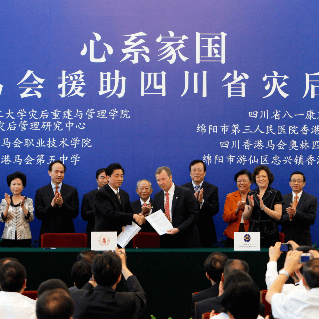 The Wenchuan Earthquake in 2008 killed 69,227 and left more than 370,000 injured. People from all over the world took part in the rescue efforts and post-earthquake reconstruction. The Club offered an emergency relief donation immediately after the earthquake, later approving a HK$1 billion donation to support a series of reconstruction projects. This included the Mianyang 3rd City Hospital HKJC Medical Complex, Mianyang Youxian Zhongxing HKJC Junior Middle School, Deyang HKJC No.5 Middle School, Ya’an HKJC Vocational College, Sichuan HKJC Olympic School, Sichuan Provincial 8-1 Rehabilitation Centre, and the Sichuan University – Hong Kong Polytechnic University Institute for Disaster Management and Reconstruction HKJC Building and HKJC Research Centre on Disaster Management.
