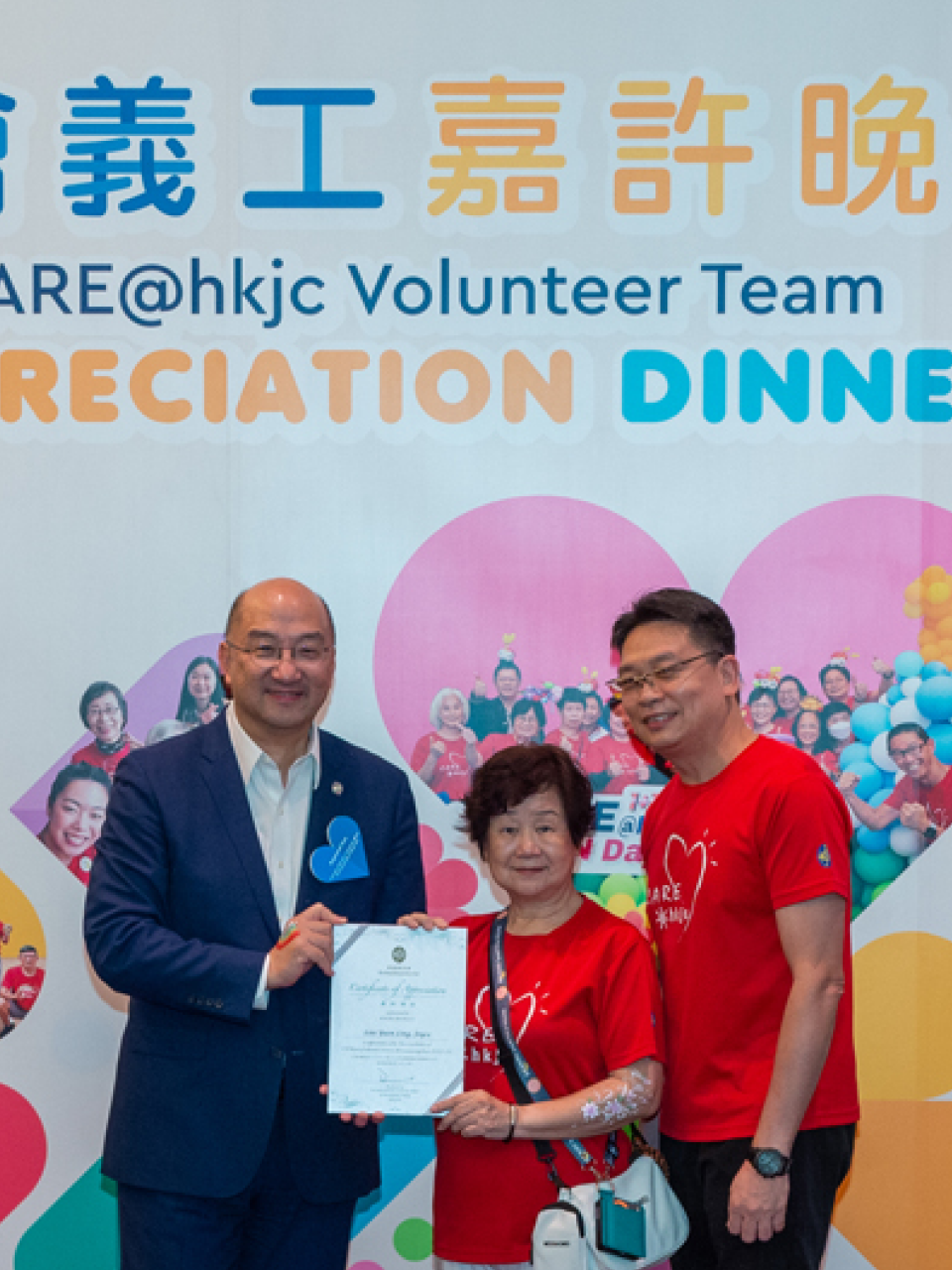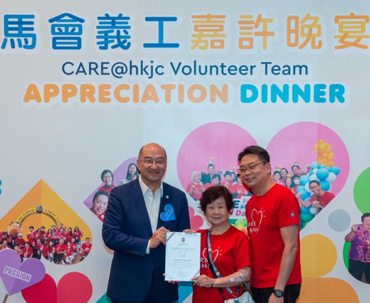 本會行政總裁應家柏在歡迎辭中對馬會義工隊成員的不懈努力表示欣賞,感謝義工們促使馬會與社區建立更緊密的連繫,並頒發嘉許奬狀予本年度榮獲最高服務時數大獎的三位義工,感謝她們積極服務社會。三位傑出義工分別是寗慕潔、梁巧明、鄧迪麗,她們在過去一年共為社區貢獻超過1,100服務小時,成績斐然。今年,嘉許禮新增其他獎項類別,以表揚馬會義工隊內全職員工和具有非凡特點的成員的積極參與。這些特別獎項由本會公司事務執行總監譚志源、投注產品執行總監范梓文與客戶策略、體驗及創新事務執行總監侯德洋頒發。