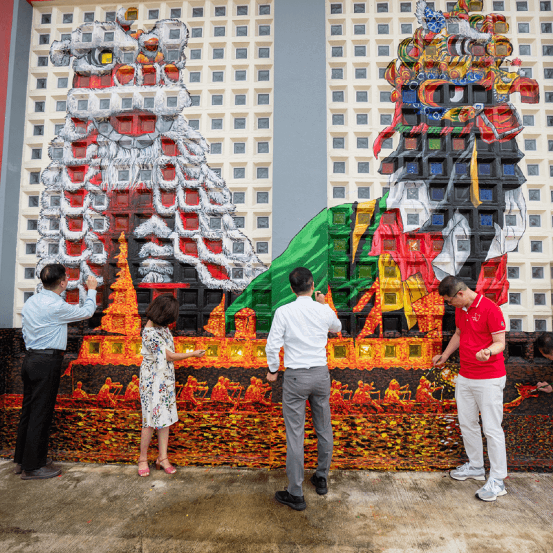 是次壁畫選址大埔林村許願廣場的獅子會林村青年中心。中心於1972年建成, 50多年來為大埔居民和青年提供多元化的服務,成為林村一個兼具社會、歷史和文化意義的地方。是次幅壁畫透過四種香港最具特色的文化活動來代表大埔的三大群體 ,包括林村舞麒麟(代表客家文化)、舞獅(代表圍頭文化)、夜龍(代表漁民文化)。最後以花牌外圍的紅布代表花牌及戲棚。而這幅壁畫的最大特色在於壁畫背後透出的玻璃畫燈光,使整幅作品在黃昏及夜間呈現多重視覺效果,成為一幅別具特色的透光壁畫。