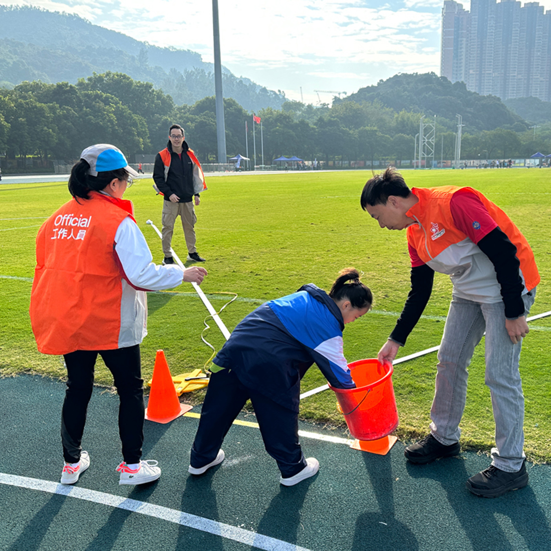 馬會動員了34位義工隊成員,協助設置各個比賽場地,計算比賽成績及維持場內秩序。活動當日天氣雖然嚴寒,但一眾義工無懼寒風,竭力為來自八間本地特殊學校超過200位參賽學生,創造一個歡樂及充滿活力的比賽環境。馬會對外事務部主管鄭琪、對外事務總經理謝文瑛及助理經理江旻憓亦到場支持一眾學生,為接力賽事鳴槍及頒獎,將賽事氣氛推向高潮。